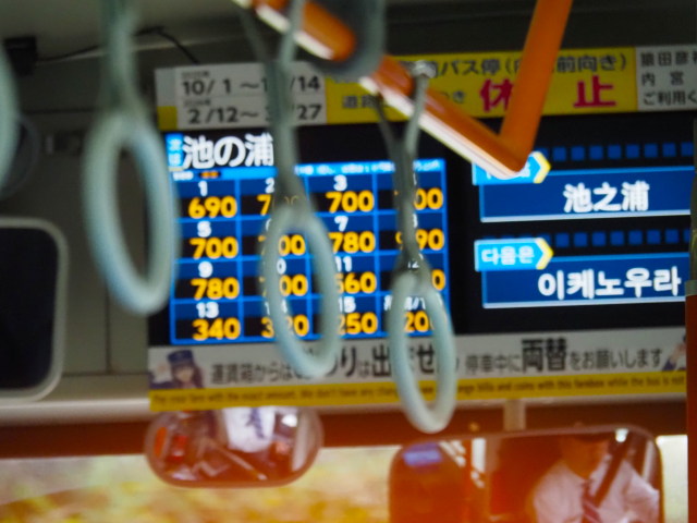 バスのなかで驚いたのは、バスの運賃。宇治山田駅前から乗るよりも伊勢市駅前から乗った方が高くなったり、サンアリーナで降りるより池の浦で降りた方が安いなど、バスが進むと運賃が大いに変化する。運賃表を眺めているだけでも面白かった。