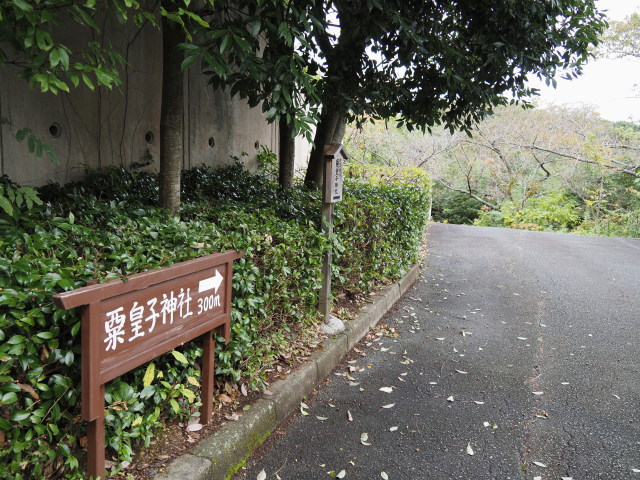 [粟皇子神社300m→]の案内板(旅荘 海の蝶)