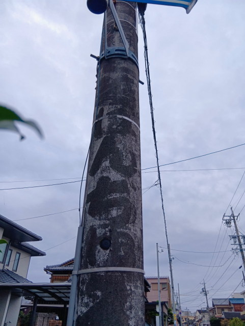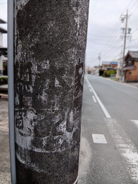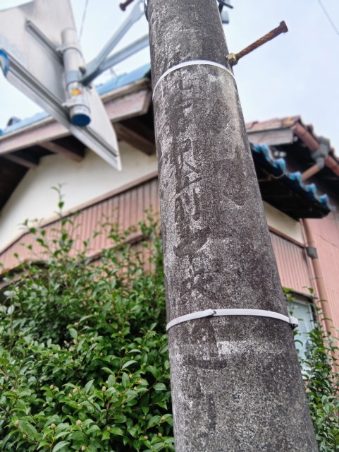 2025年11月13日(木) こんな所にも残っていた直書き塗広告の電柱(伊勢市船江) (徒歩)