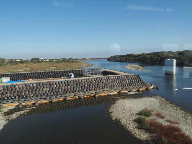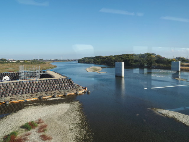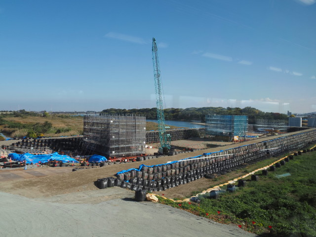 JR参宮線 宮川橋梁から眺めた新宮川橋の橋脚工事現場