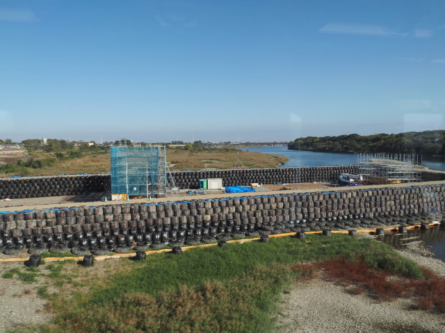 2025年11月16日(日) JR参宮線 宮川橋梁から眺めた新宮川橋の橋脚工事現場 (JR)