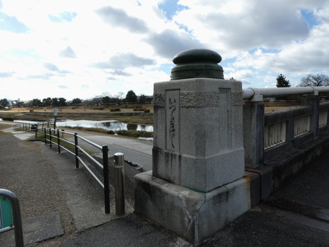 綾小路橋(堀川)の旧親柱(四条堀川交差点付近)