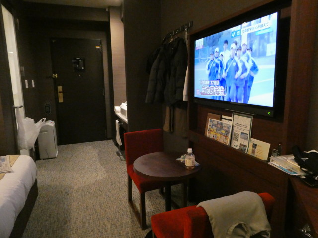 このホテルは大浴場付きで、コーヒー飲み放題、さらに新聞(朝刊、夕刊)が無料提供される。しかも、今回はチェックイン時に、デラックス・ツインへのアップグレードというおまけ付きだった。