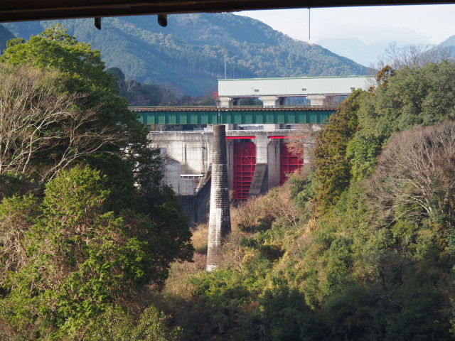 舟木橋から望むJR紀勢本線の宮川橋梁と三瀬谷ダム